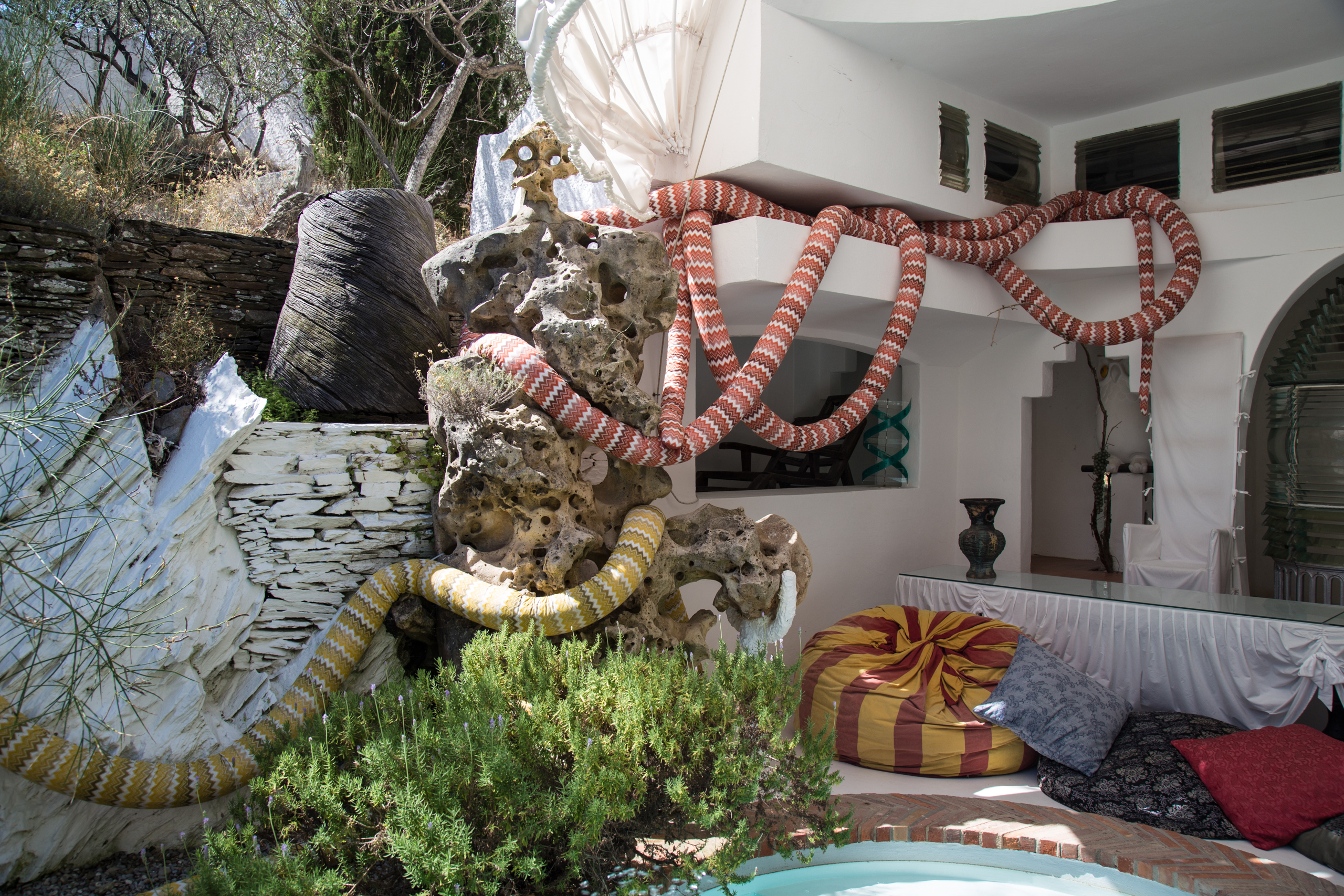 В 1930 году молодой Сальвадор Дали купил рыбацкую хижину в пригороде Кадакеса - Порт-Льигате. В том же году он прикупил еще одну хижину по соседству и стал из этого строить свой дом - со свойственным ему легким безумием. Потом на десять лет Дали с супругой Галой (он с ней в Кадакесе в 1929 году и познакомился, причем Гала тогда была замужем за поэтом Полем Элюаром) уезжают в США, а когда возвращаются - продолжают скупать хижины (всего их было семь) и выстраивать этот особняк со множеством комнат, где принципиально не было предусмотрено ни одной спальни для гостей.