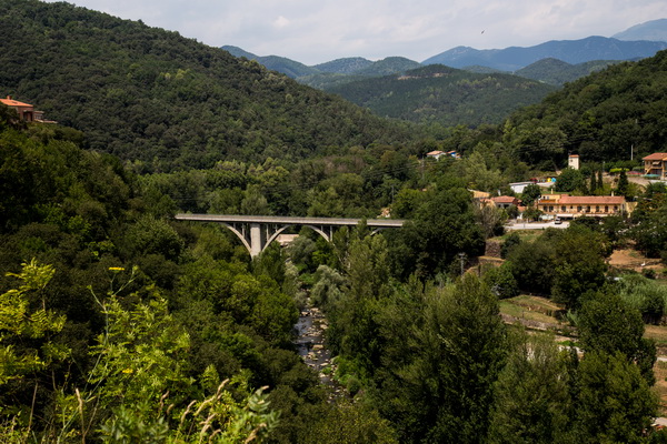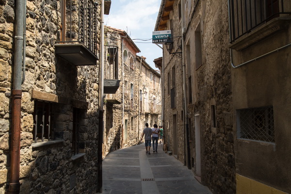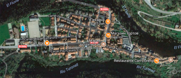 В Каталонии тоже есть такой городок, который часто посещают туристы. Это Кастельфольит-де-ла-рока (Castellfollit de la Roca), находящийся в провинции Жирона вот здесь. Он расположен на длинной узкой скале высотой в пятьдесят метров, где помещается всего два ряда домов. Население города - одна тысяча человек.