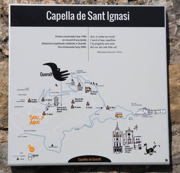 Все это находится на вершине горы Сьерра-де-Керальт (высота - 1200 метров), а в картах надо искать храм Сантуарио де Керальт (Santuari de Santa Maria de Queralt) - тогда навигатор приведет именно туда, куда нужно.