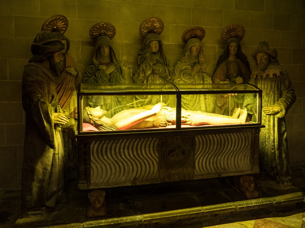 Обратите внимание: на левой ноге скульптуры лежащего мужчины примостилась скорбящая собачка.