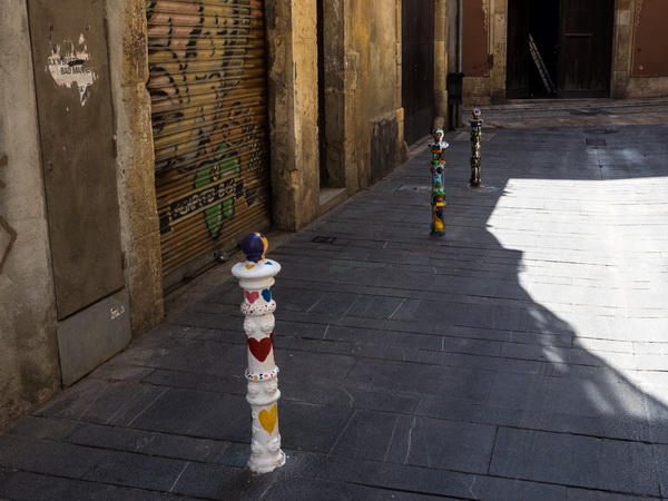 И в начале этой улицы (Rambla Nova) стоит памятник тем самым живым пирамидам, очень интересно смотрится. И ещё там рядом интересный фонтан - место сбора потерявшихся туристов, у россиян его название: "блюющие бегемотики" 😉.
