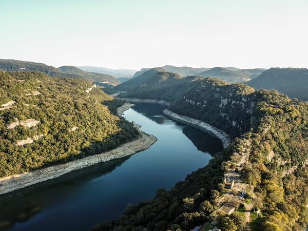 Когда спускаешься вниз, там с другой стороны дороги находится гостиница Parador De Vic-Sau и от нее открывается чудесный вид на все то же водохранилище Sau.
