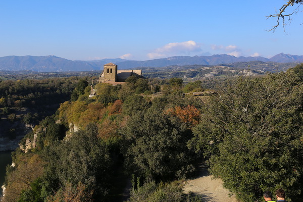 После этого отправились в сторону монастыря Сант-Пере де Касерес (Sant Pere de Casserres - вот здесь). Он находится на длинной узкой скале полуострова - почти как знаменитая деревушка Кастельфольит. К монастырю можно подняться на машине, хотя дорога узковата и со встречными машинами разъезжаться не очень просто.