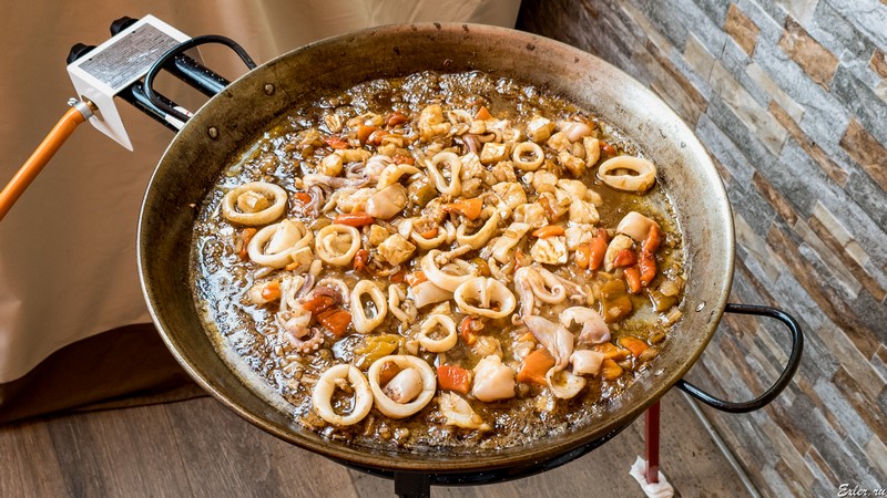 При этом в паэлье из морепродуктов сначала рис обычно чуть обжаривают (скорее, просто прогревают), а потом добавляют бульон.
