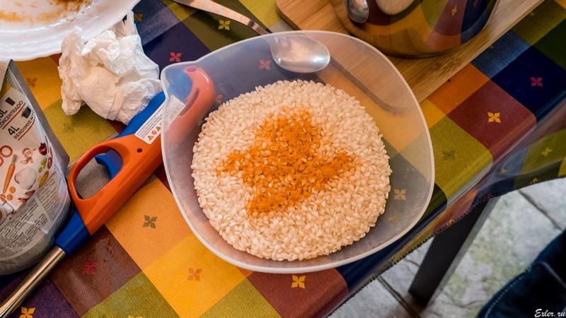 Очень важно: рис - не замачивать и не мыть! Это рис не для варки, это рис для паэльи!