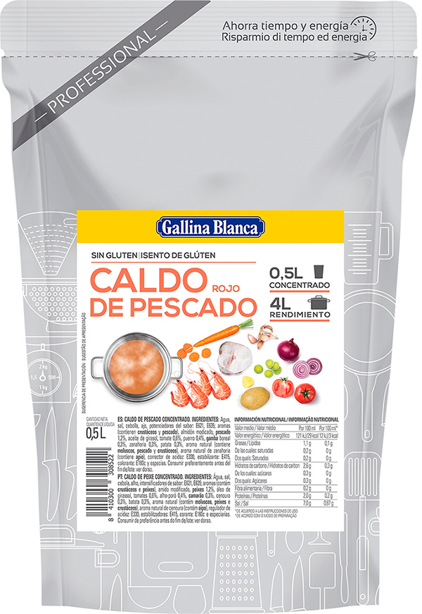 Рыбный бульон делается очень просто: на 400 миллилитров кипящей воды - 100 миллилитров концентрата.