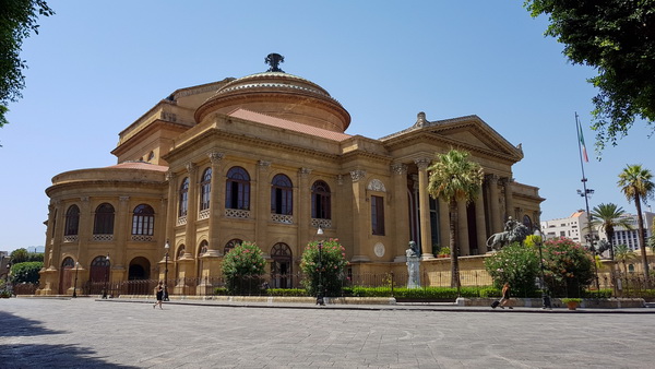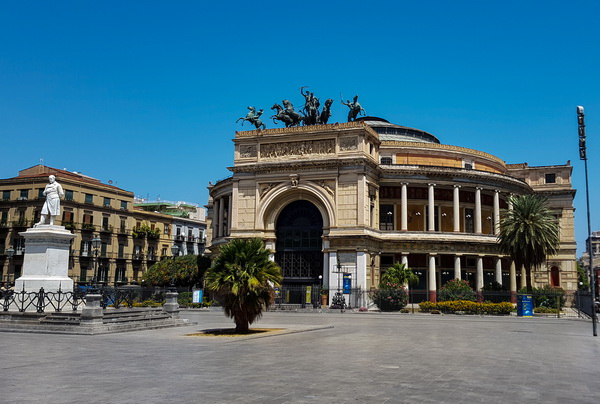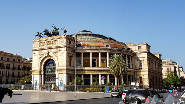 Вот он, Театр Массимо. Оперный театр - крупнейший в Италии и один из самых больших в Европе. Строить его начали в 1874 году и окончательно построили только через 22 года. В 1974 году его закрывали на реставрацию, но выделенные средства постоянно расхищали, в результате чего театр реставрировали даже дольше, чем строили - 23 года.