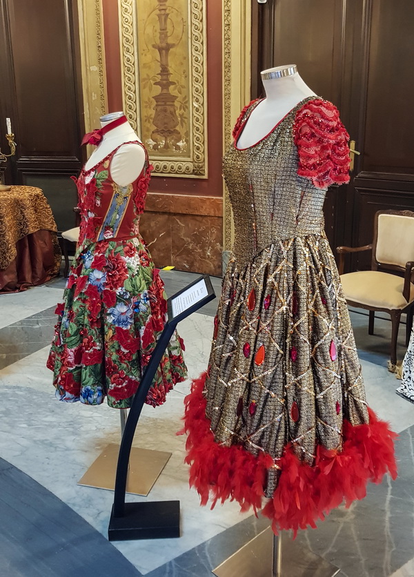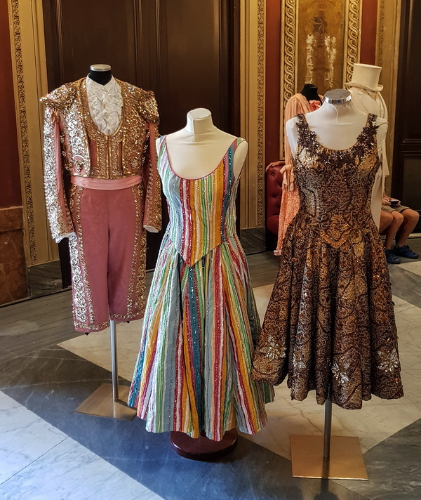 Далее нас привели в два больших зала, где выставлены театральные костюмы из знаменитых опер. Залы, кстати, и сами по себе очень примечательные.