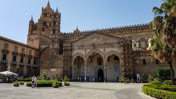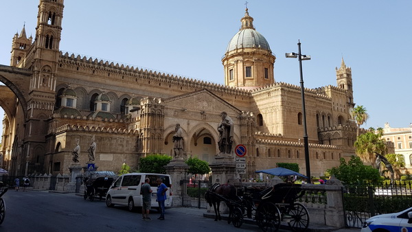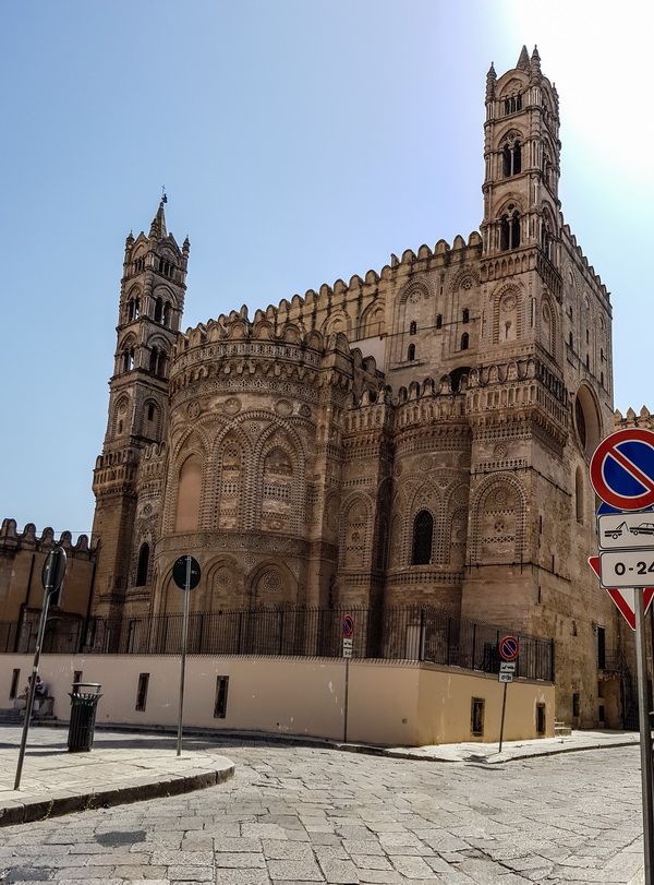 Жемчужина Палермо - большой Кафедральный собор. Он огромный, площадь не такая большая, целиком его толком не сфотографируешь, поэтому по частям.