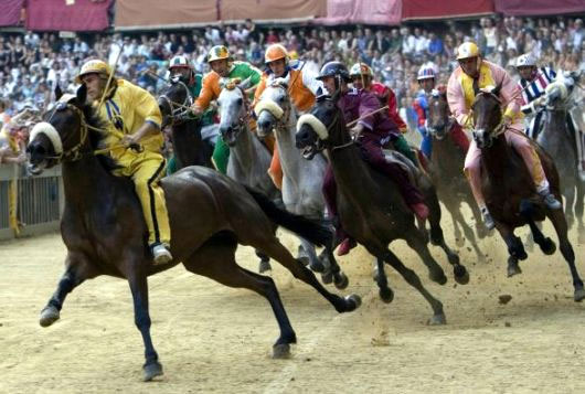 Наиболее ярко соперничество контрад проявляется во время самого главного празднества в Сиене, привлекающего толпы туристов, - Палио. Праздник Палио представляет собой лошадиные бега, проводящиеся на Пьяцца Дель-Кампо. В XIV веке, когда Палио только зарождался, соревнования проходили на быках и ослах, но потом пришли к выводу, что на лошадях как-то сподручнее, эффектнее, да и быстрее. Проводится Палио два раза в году - 2 июля и 16 августа.