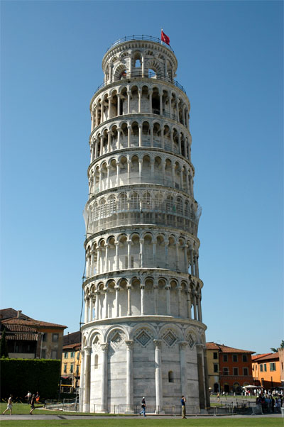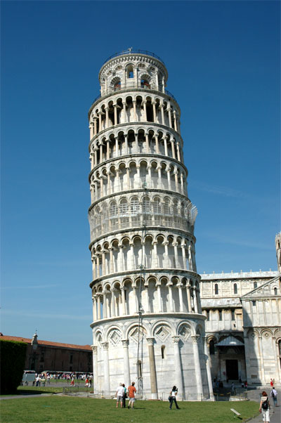 Эту башню (колокольню) архитекторы начали строить еще в XII веке, и так им это занятие понравилось, что строительство длилось аж 200 лет - вплоть до XIV века со всеми остановками. Имя первого мастера, возводившего башню, история не сохранила, но доподлинно известно, что у него то ли сломался ватерпас, то ли он вообще пренебрегал этим полезным инструментом, но факт остается фактом - башня получилась не ровная, как тростиночка, а наклонная, как ивушка. Причем понятно, что задумано так не было, потому что даже в пьяном бреду невозможно задумать наклонную башню, являющуюся символом неустойчивости и опасности.