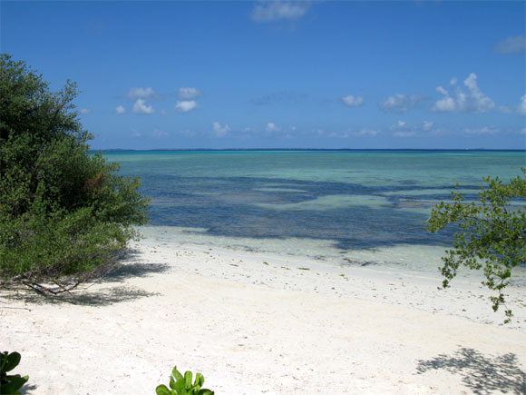 У этого острова нет своего "домашнего рифа", поэтому плавать в океане рядом с виллами с маской нет никакого смысла: кораллов нет, рыбы почти нет, дно скучное и неинтересное. Кроме того, метров сто очень мелко, и океан прогревается градусов до 37, так что купание как-то не освежает. Чтобы добраться до прохладной воды, приходится прошагать или проплыть довольно большое расстояние.