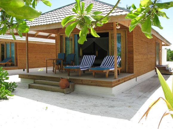 Народ на форуме писал, что виллы - отличные, еда и обслуживание - тоже замечательные, а вот сам остров пока еще диковатый: мол, видно, что его только начали облагораживать и он еще не дошел до стадии нереальной красоты традиционных мальдивских островов. С другой стороны, радовались некоторые отдыхающие, даже и хорошо, что он не похож на остальные, - мол, эта прилизанная красота давно надоела, так что хочется чего-нибудь натурального. Ну и все говорили, что для любителей дайвинга и сноркелинга (плавание с маской и трубкой) здесь вовсе не фонтан: океан у пляжей вилл скучный, рыбы мало, а рядом с некоторыми виллами - так и вообще плавают морские огурцы, которые портят весь волшебный мальдивский вид, да и на берег выбрасываются, создавая неприятную бурую полосу вдоль пляжа. Огурцы, правда, постоянно убирают, но тем не менее.