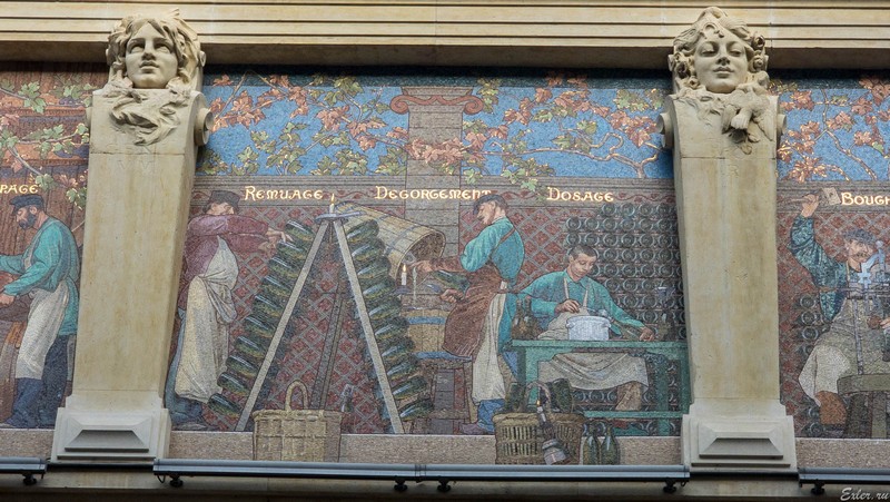 Вот одно из панно покрупнее: ремюаж, дегоржаж, дозаж (добавление дозажного ликера).