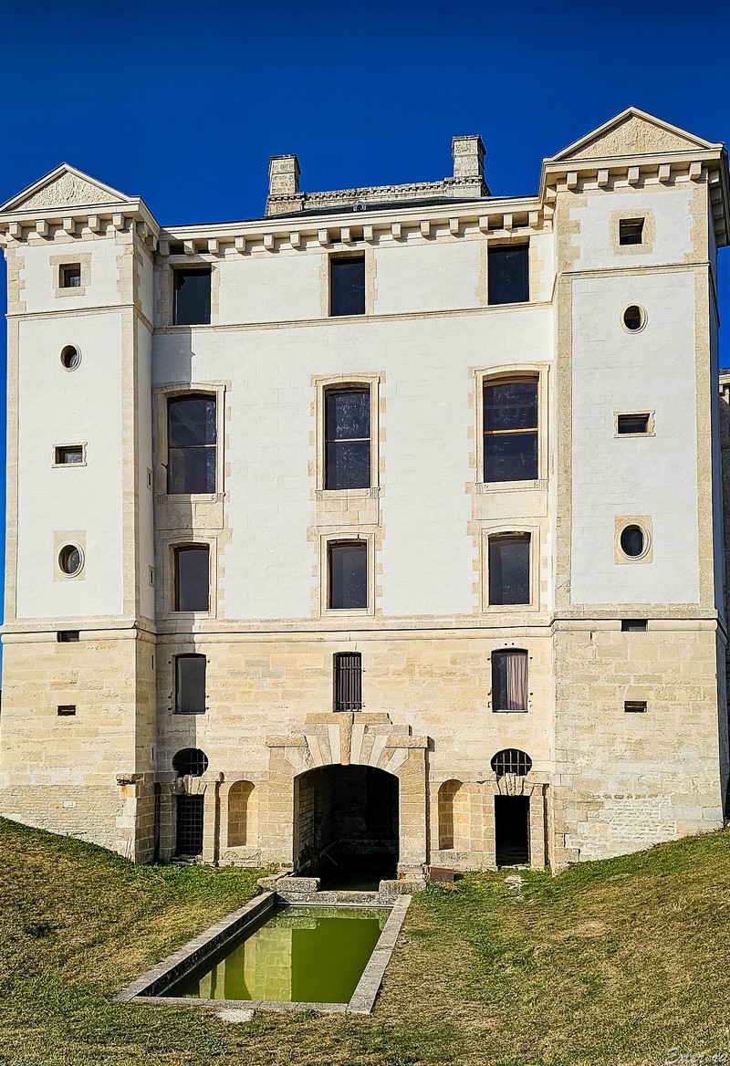 Этот замок в XVI веке построили супруги графиня Тоннера Луиза де Клермон и Антуан де Круссол, герцог Юза. На этом месте когда-то стояло укрепленное сооружение "мотт Мольн", которое было разрушено бургундскими войсками, и на этом месте они построили замок с очень необычной архитектурой: он имеет пятиугольную форму, каждый угол венчает башня, а в центре замка расположен колодец, окруженный винтовой лестницей.