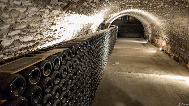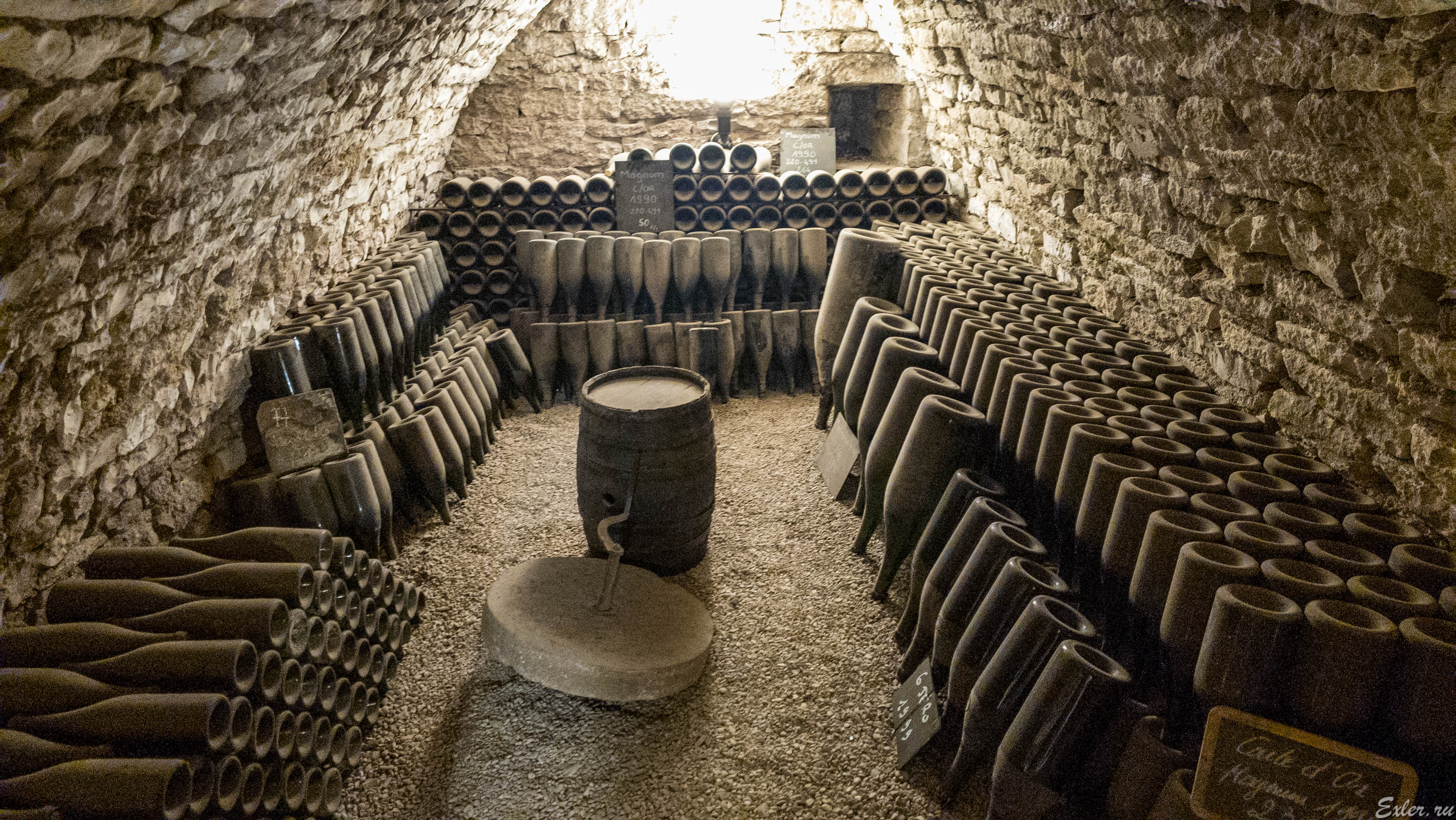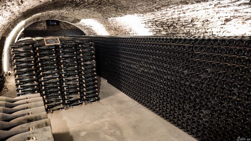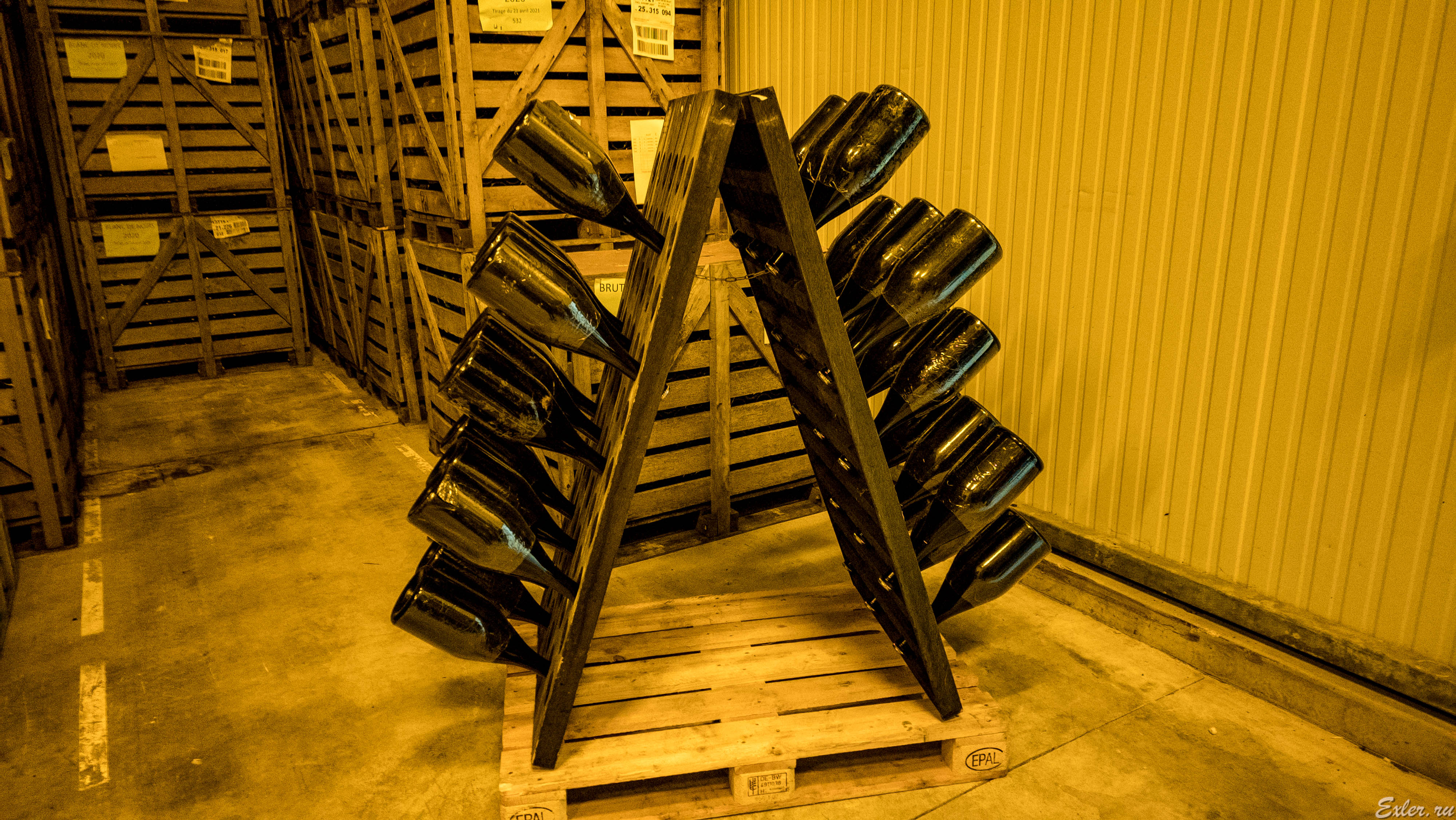 Помещение, где шампанское выдерживается на осадке. По стандарту шампанское должно производиться в тех же бутылках, в которых оно продается - это от бутылок емкостью в 350 мл до 3-литровых Джеробомов. Однако есть хозяйства, где даже Приматы и Мелхиседеки (27 и 30 литров) производят в бутылках соответствующей емкости.
