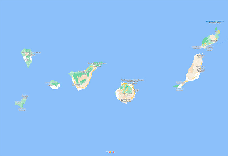 Канарские острова - архипелаг из семи островов вулканического происхождения в Атлантическом океане, расположенный недалеко от северо-западного побережья Африки (Марокко и Западная Сахара). Острова принадлежат Испании и являются одним из автономных сообществ этой страны. Столиц у архипелага две - Санта-Крус-де-Тенерифе и Лас-Пальмас-де-Гран-Канария.