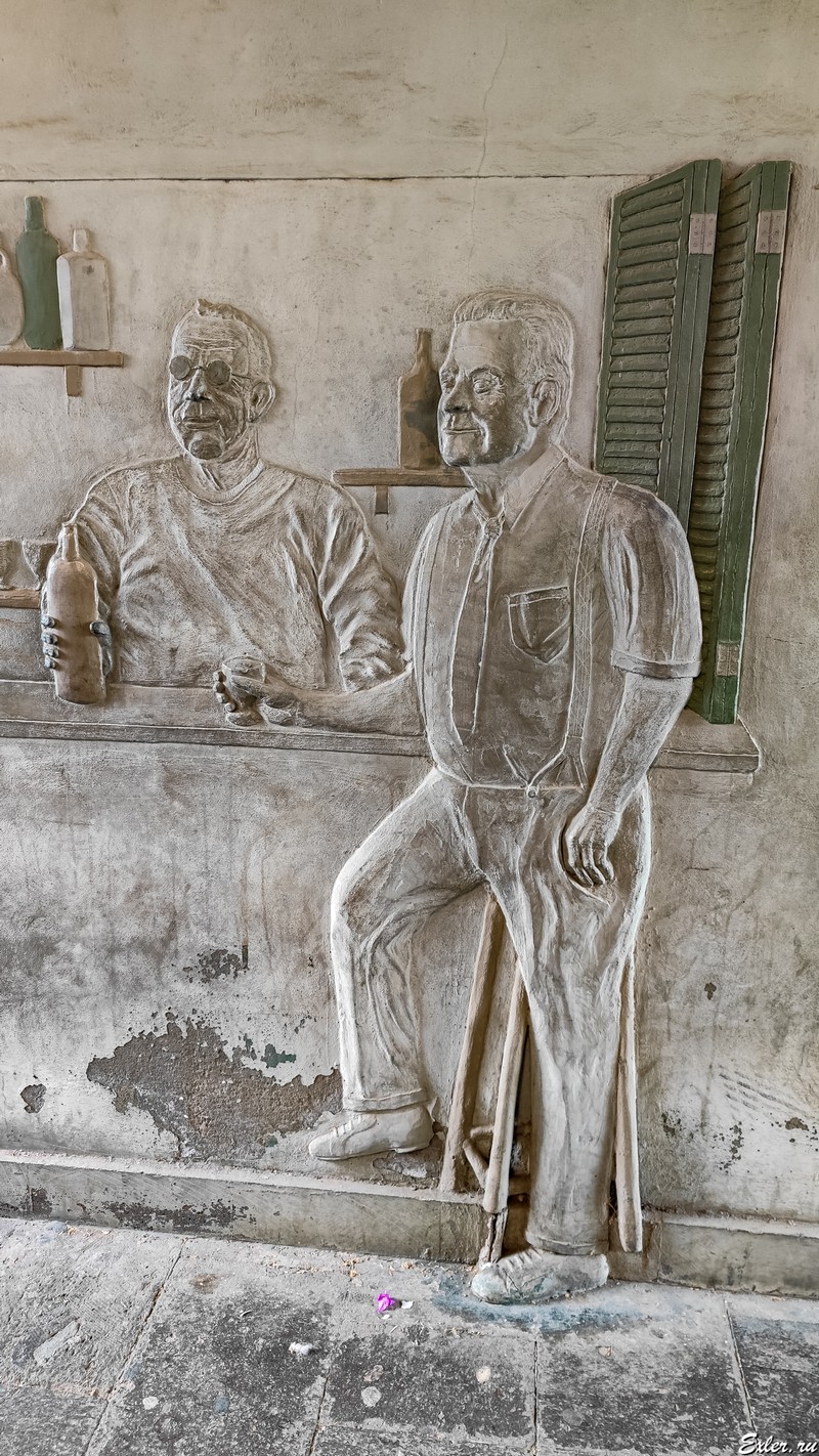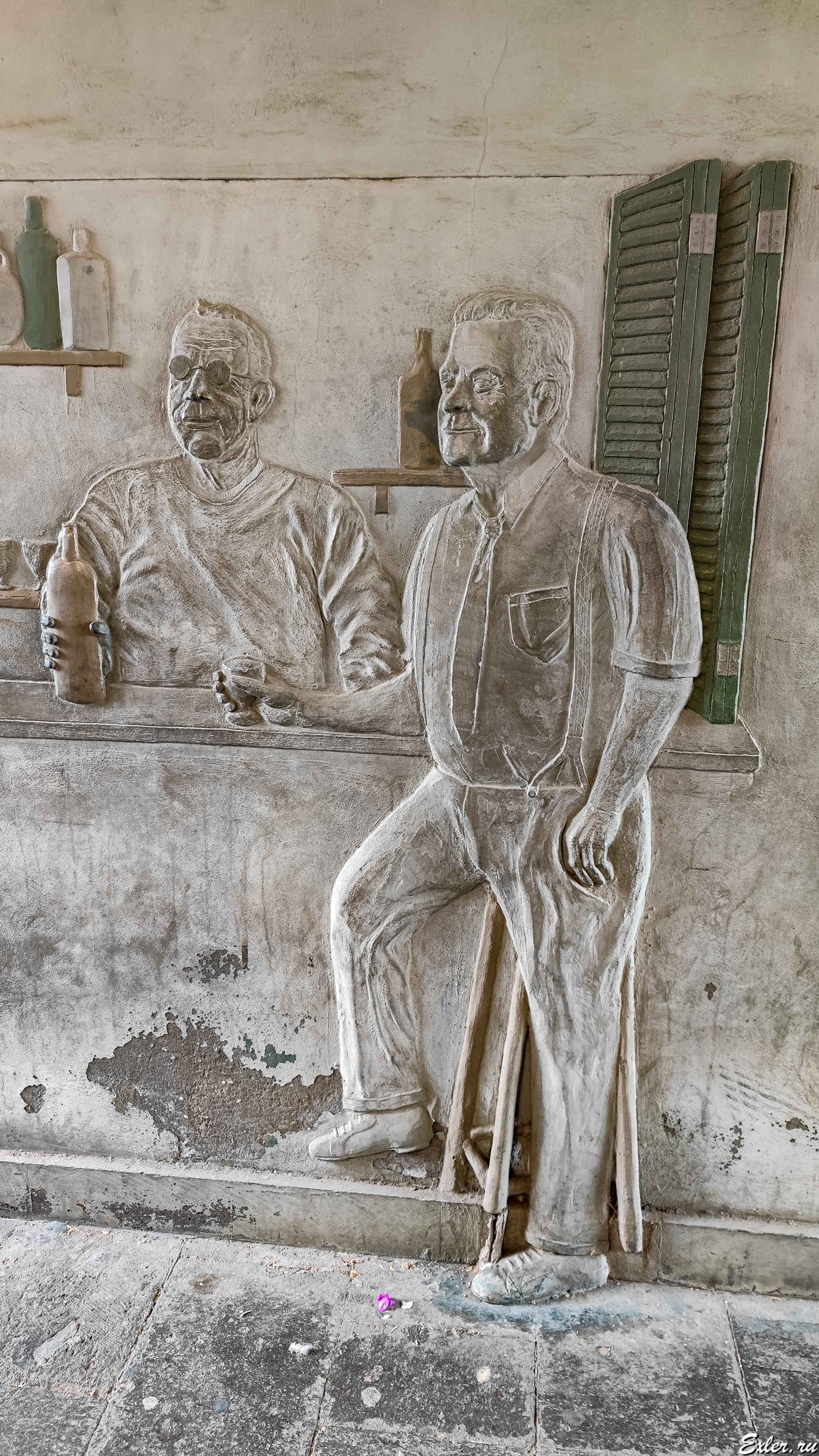 На одной из улочек города обнаружились вот такие впечатляющие горельефы. Причем улочка совсем узкая, темная, снимать было сложно.