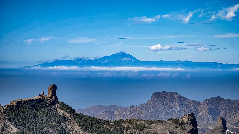 Нам сказали, что вот это на горизонте виден остров Тенерифе и его самая высокая точка - пик Тейде, который возвышается на 3718 метров над уровнем моря.