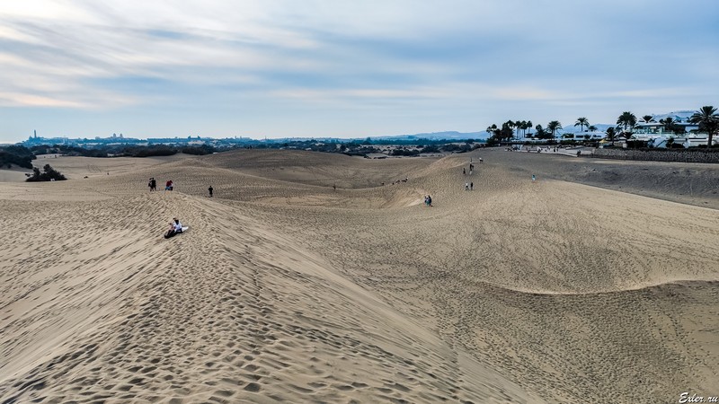 Дюны Маспаломас (Dunas de Maspalomas) - уникальное место, расположенное прямо на юге Гран-Канария в городе Маспаломасе. Это такая мини-пустыня площадью примерно в 403 гектара с песчаными дюнами, у которых постоянно меняется ландшафт.