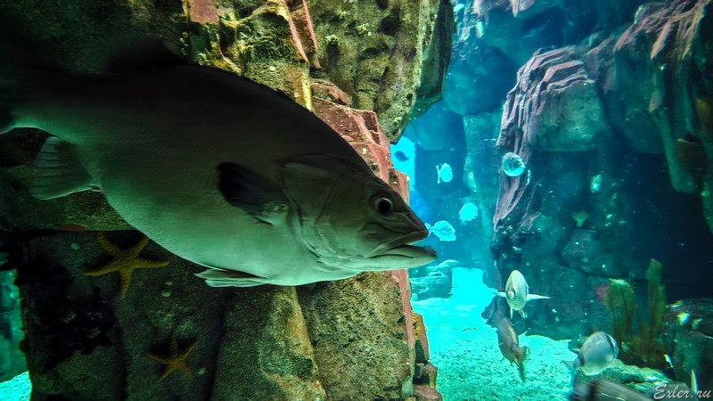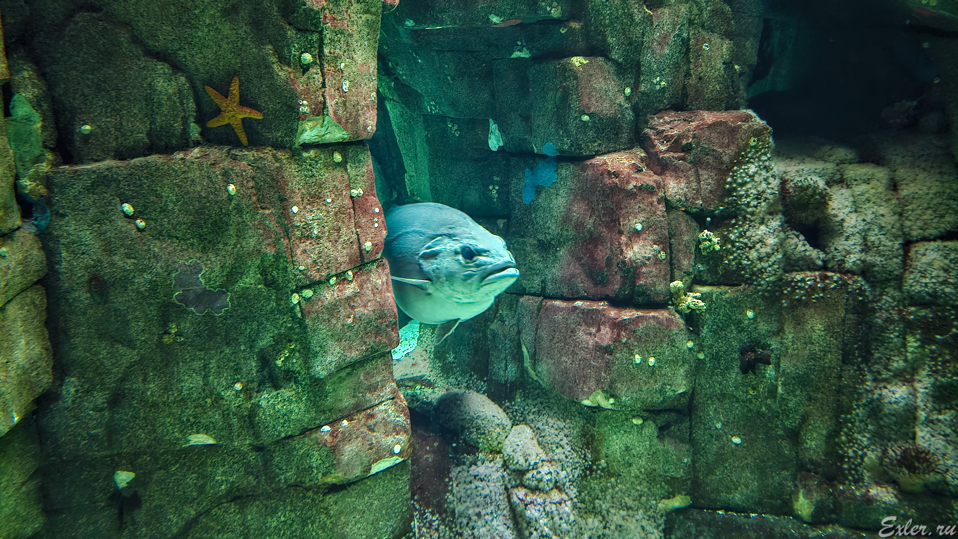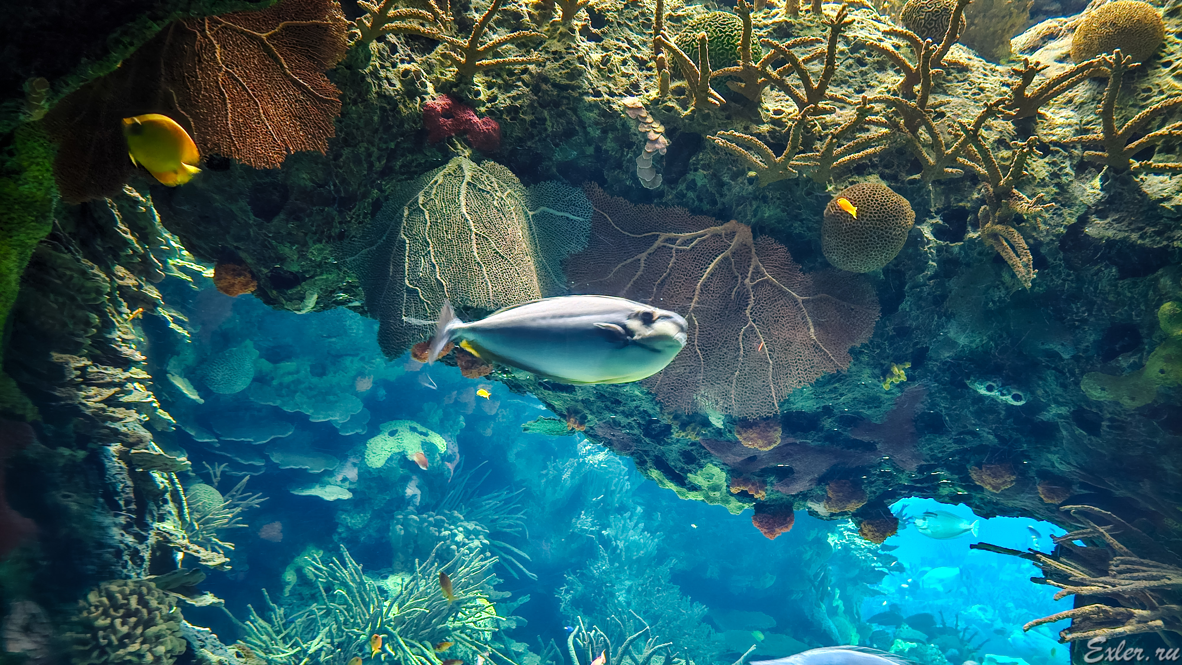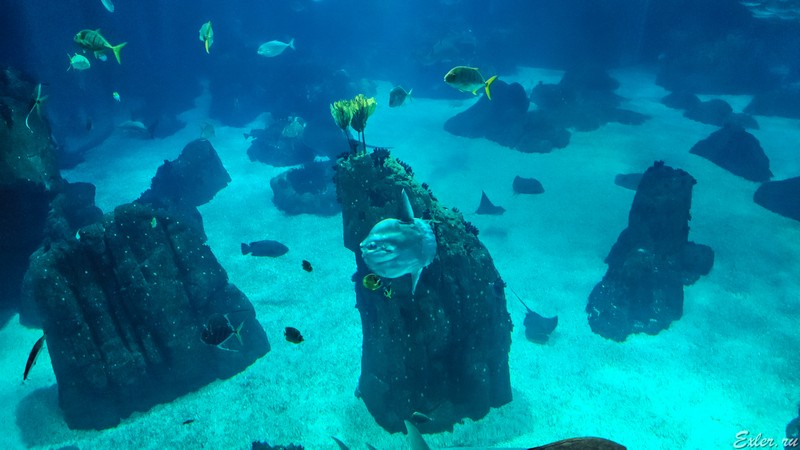 В центре кадра ниже - уникальная рыба-луна, одна из главных достопримечательностей этого океанариума.