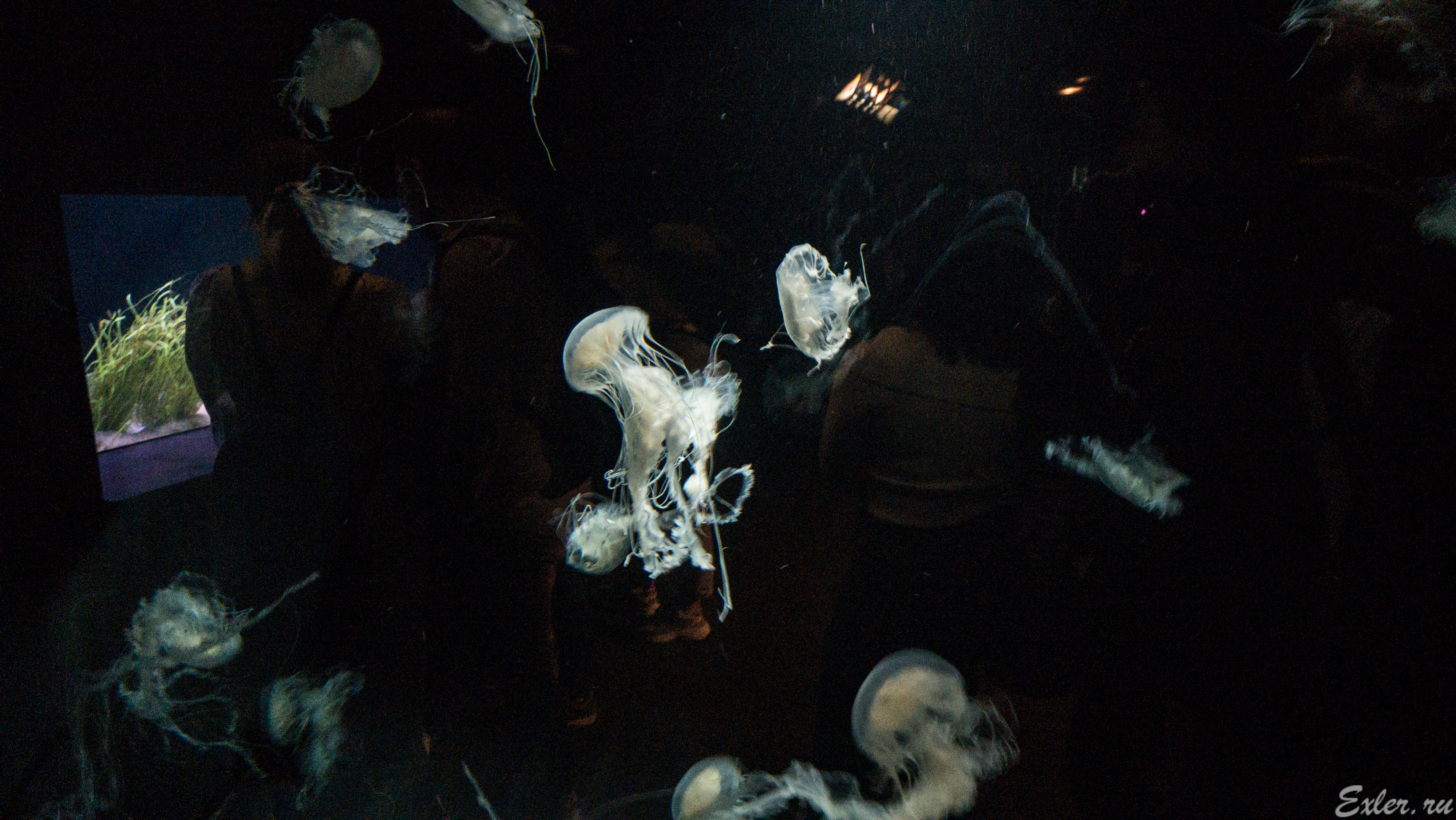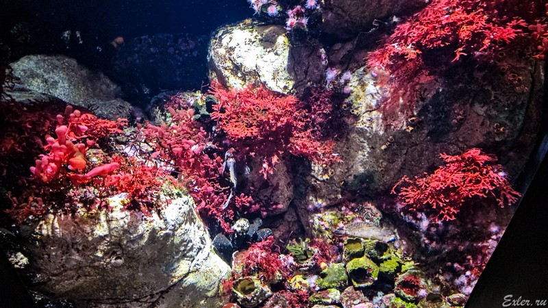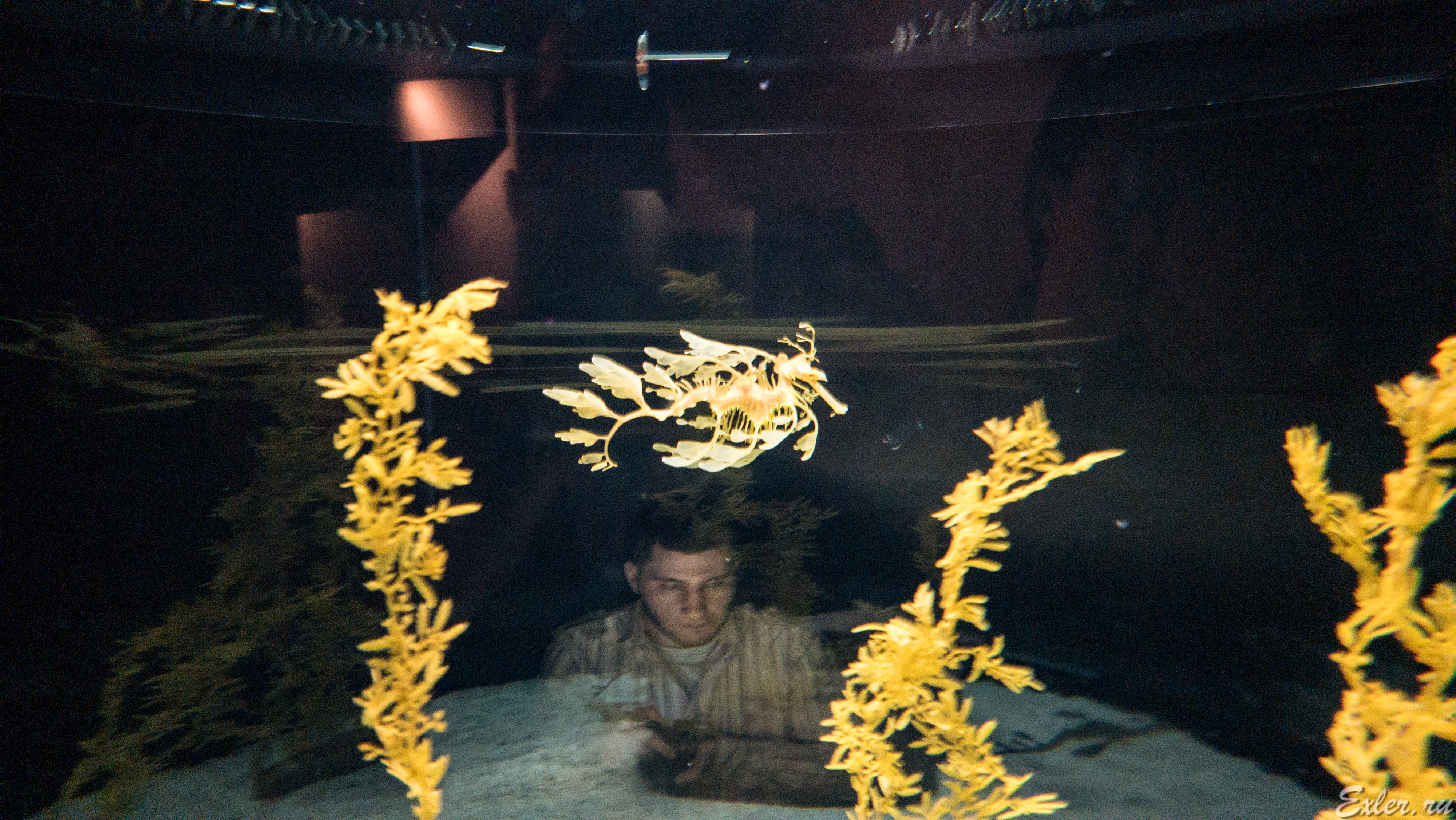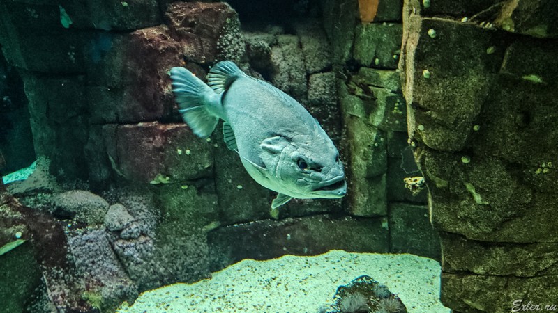 В центре кадра ниже - уникальная рыба-луна, одна из главных достопримечательностей этого океанариума.