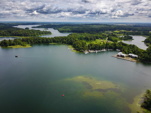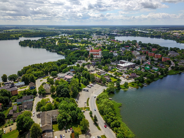 После Тракая мы заехали вот сюда: нам сказали, что здесь прикольная найсвьюшка. На самом деле с земли кроме деревьев там толком ничего не было видно, но квадрокоптер, конечно, раскрыл нам глаза на окружающие красоты.