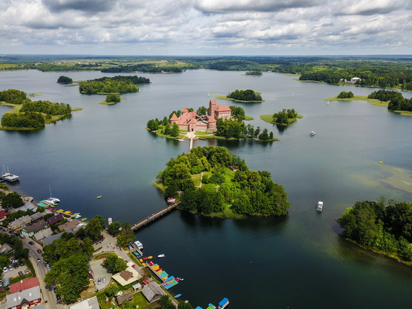 И прежде всего мы посмотрим на Тракайский замок глазами птицы - то есть квадрокоптера. Смотрите, какая красота. (Все фото кликабельны, как обычно.)