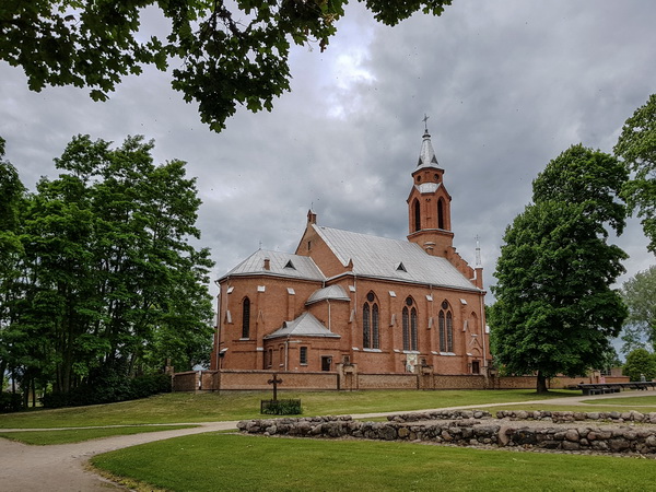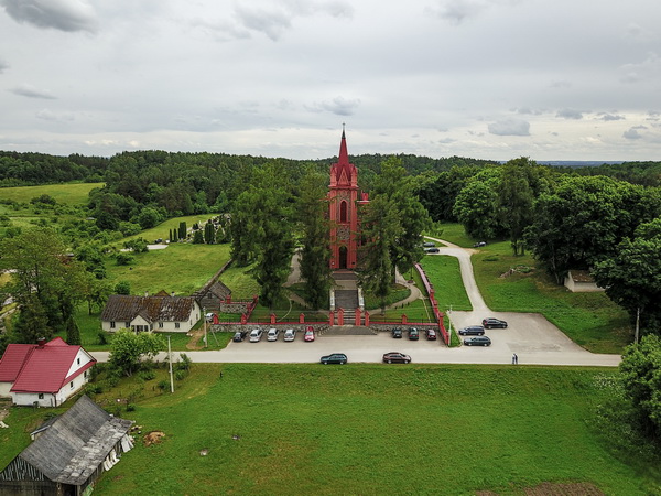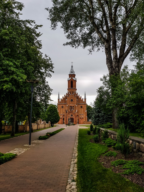 Идем от парковки - нас встречает красивая Кернавская католическая церковь - KERNAVĖS ŠVČ. MERGELĖS MARIJOS ŠKAPLIERINĖS BAŽNYČIA, если быть точным.