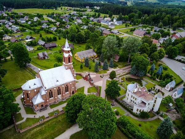 Ну и когда мы возвращались в Вильнюс, то по дороге вот здесь обнаружили очень симпатичную церковь и я ее заснял с квадрокоптера.