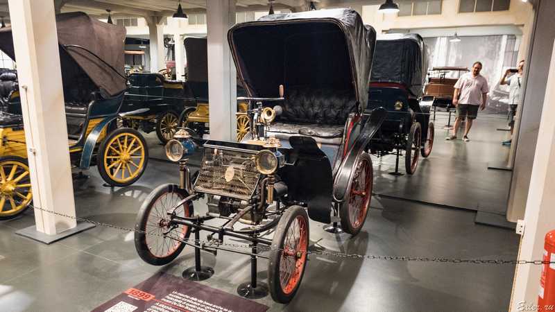Начинается зал истории автомобилей вот с такой кареты, которая уже и не карета, а фактически автомобиль, так как у нее есть паровой двигатель.