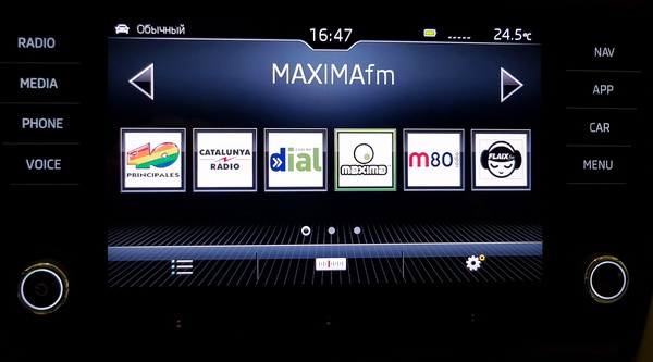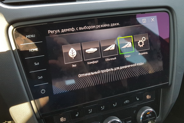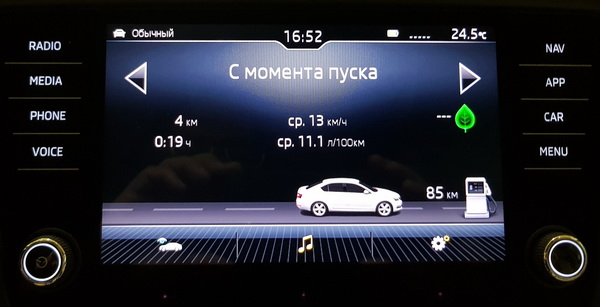 Однако с модели 2017 года Octavia штатно комплектуются очень комфортным сенсорным восьмидюймовым дисплеем. Дисплей очень качественный, имеет хороший запас по яркости и эффективный антибликовый фильтр: даже на прямых солнечных лучах изображение тут хорошо различимо, а я видел немало автомобильных дисплеев, которые в такой ситуации ощутимо слепли.