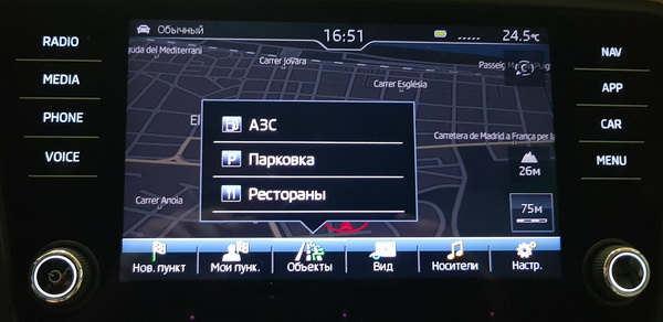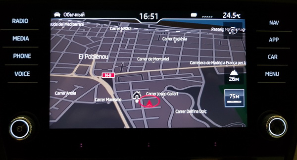 Навигация. Мне она сначала не очень понравилась, и я вместо встроенной навигации использовал смартфон, но весь тест-драйв мы ездили только по автомобильной навигации, потому что нельзя было отклоняться от маршрута, и я к автомобильной, в общем, привык. Тут главное - включать голосовое сопровождение и посматривать на предстоящие повороты, которые выводятся на приборной доске.
