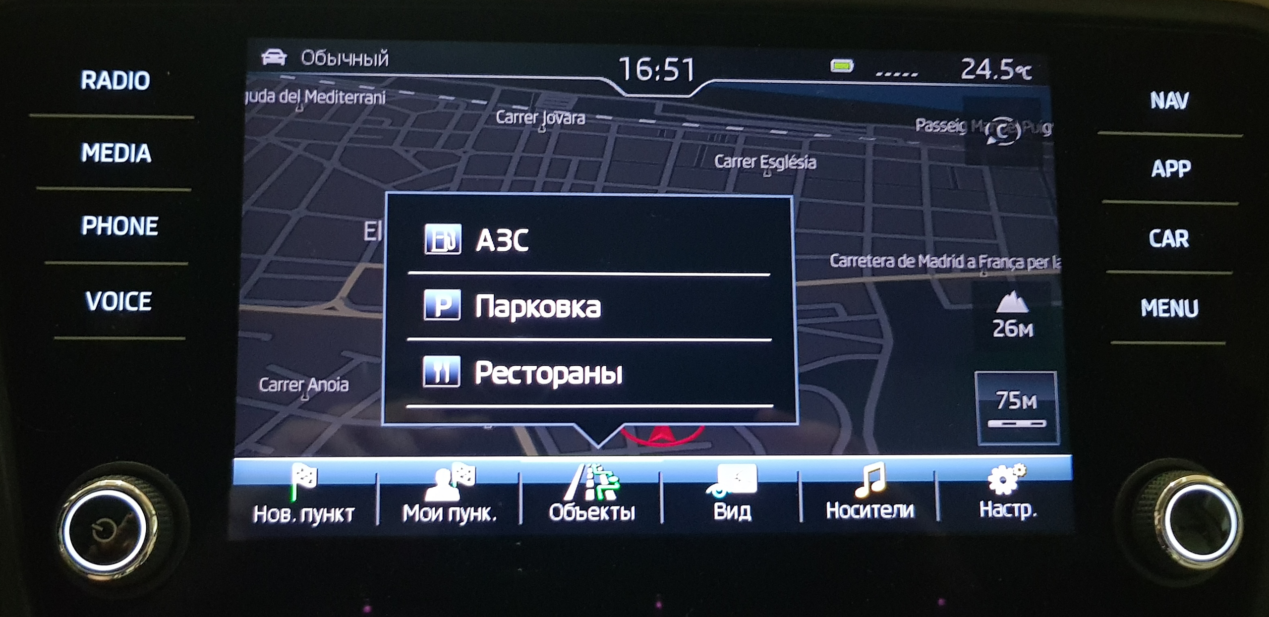 У моей машины вариант установки, где различные разделы вызываются сенсорными кнопками, в машинах на тест-драйве разделы вызывались с помощью пиктограмм. Но в остальном системы были практически одинаковые.