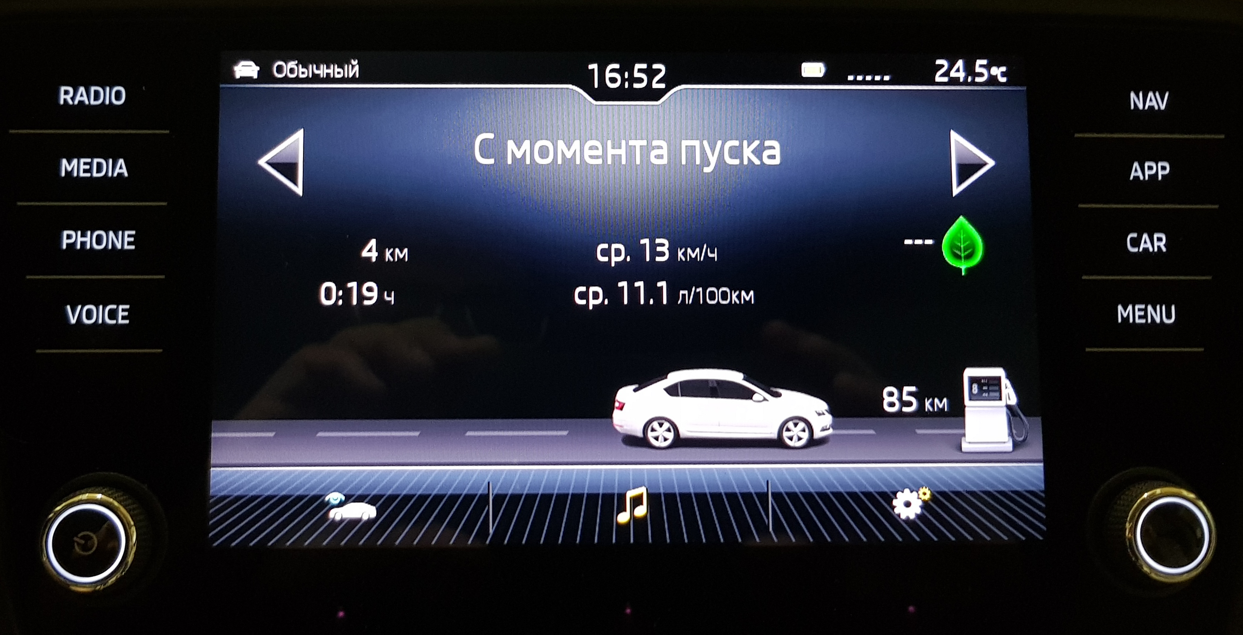 Мультимедийно-информационная система новой Octavia. У предыдущей модели штатный дисплей был шестидюймовым, восьмидюймовый предлагался как расширенная опция за очень серьезные деньги - что-то там порядка аж €1200.