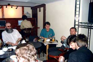 Сразу должен предупредить о том, что цены там - не низкие. Кафе очень приличное и рассчитано на солидных людей. В ассортименте - огромный выбор всевозможных напитков и коктейлей, разливное пиво разных сортов, уникальный выбор вин и виски, легкие закуски. Кроме непосредственно Интернета, посетители могут развлечь себя игрой в огромный электронный "дартс" или покатать шары в американский пул (бильярдный стол - очень хороший).