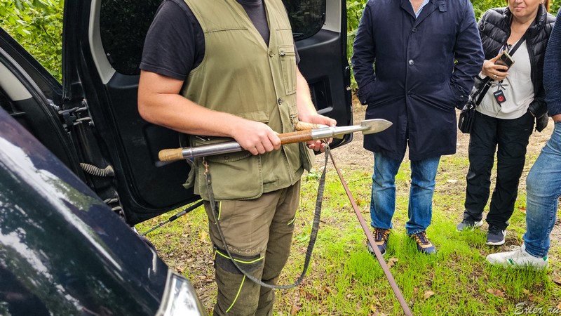 У Даниэле - несколько специальных приспособлений, чтобы рыть землю. Вот такая лопатка - для белых трюфелей, которые могут расти глубоко, до полуметра глубины.