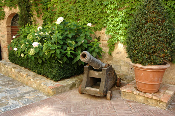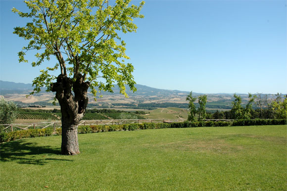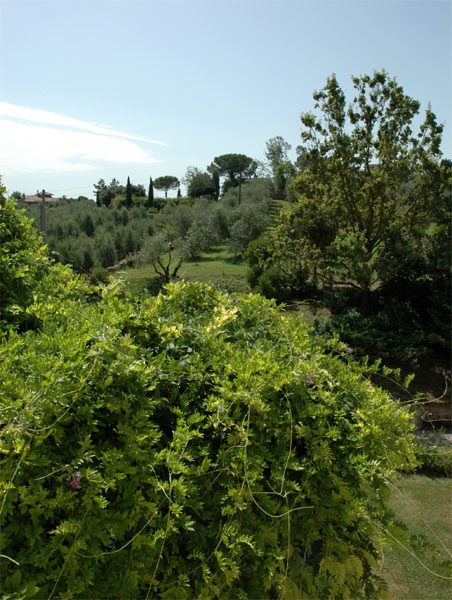 "Пойдемте во двор", - предложил Николо. Мы сначала подумали, что снова выйдем на площадь, но он нас повел к совершенно другим дверям, и мы - вышли во двор. Там еще и двор, прости господи. Гектара на три. С шикарным видом на долину и кусок Сиены.