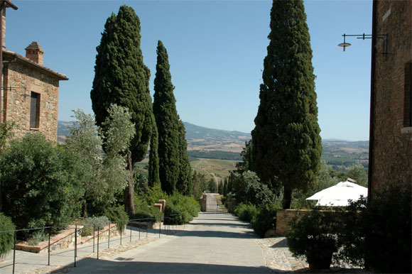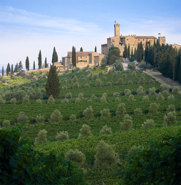 Отель Castello Banfi интересен не только тем, что он располагается в зданиях средневековой крепости. Castello Banfi - это еще и одно из самых известных тосканских винодельческих хозяйств, основанное, между прочим, американскими предпринимателями Джоном и Гарри Мариани совместно c ведущим итальянским энологом Эцио Ривелла.