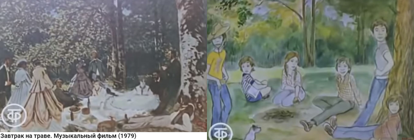 Клод Моне, один из основателей и последовательный сторонник движения импрессионистов, написал «Завтрак на траве» для заявки на Парижский салон 1866 года, а также в качестве вызова Эдуарду Мане с его одноимённой картиной довольно фривольного содержания.