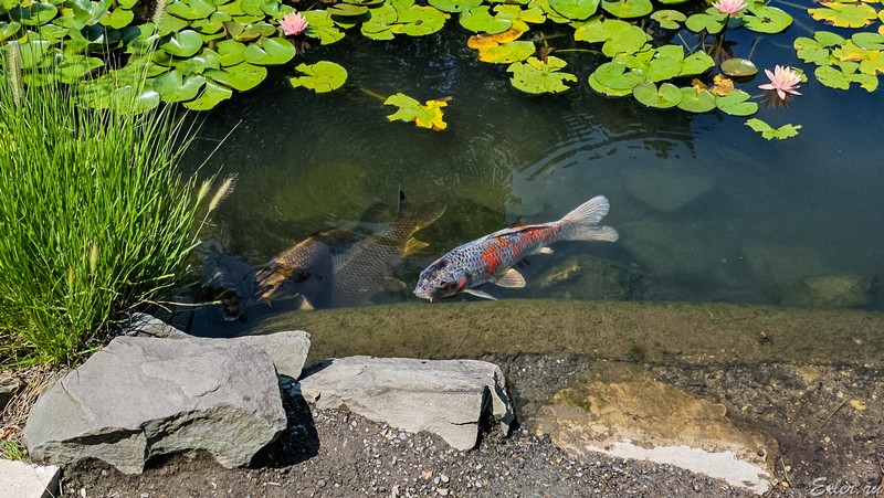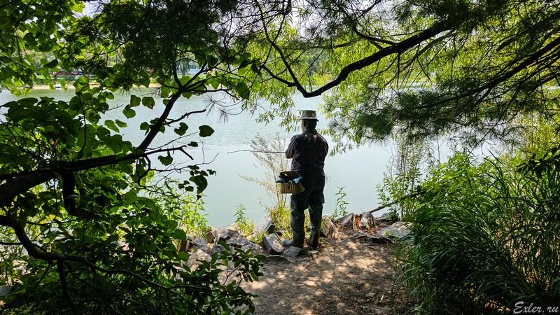 Карпы тут откормленные, наглые. Фактически вылезают из воды и требуют их покормить. Потому что аппетит - он приходит во время еды!