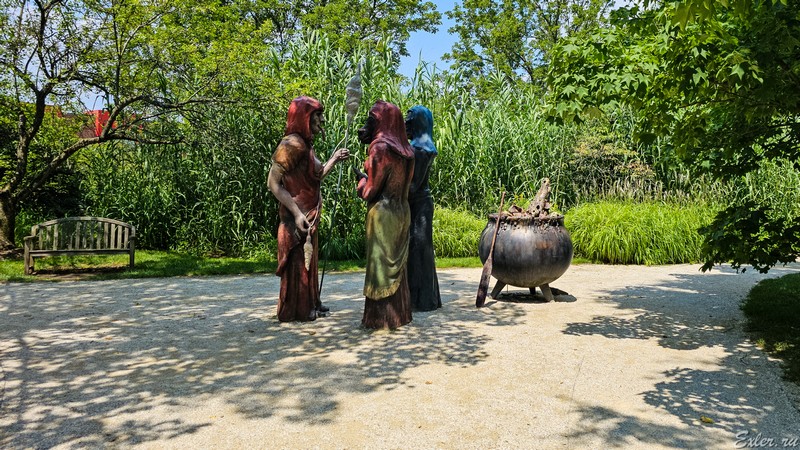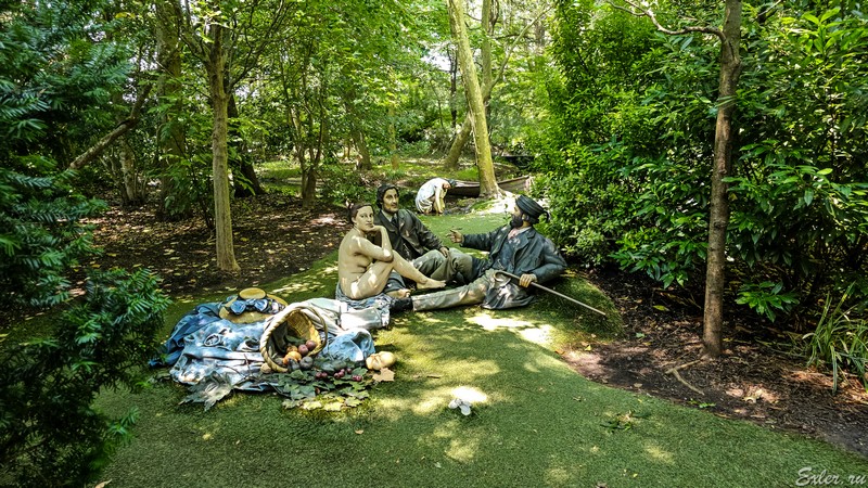 В парке есть как имитации известных картин, так и различные другие скульптуры, фигуры и инсталляции.