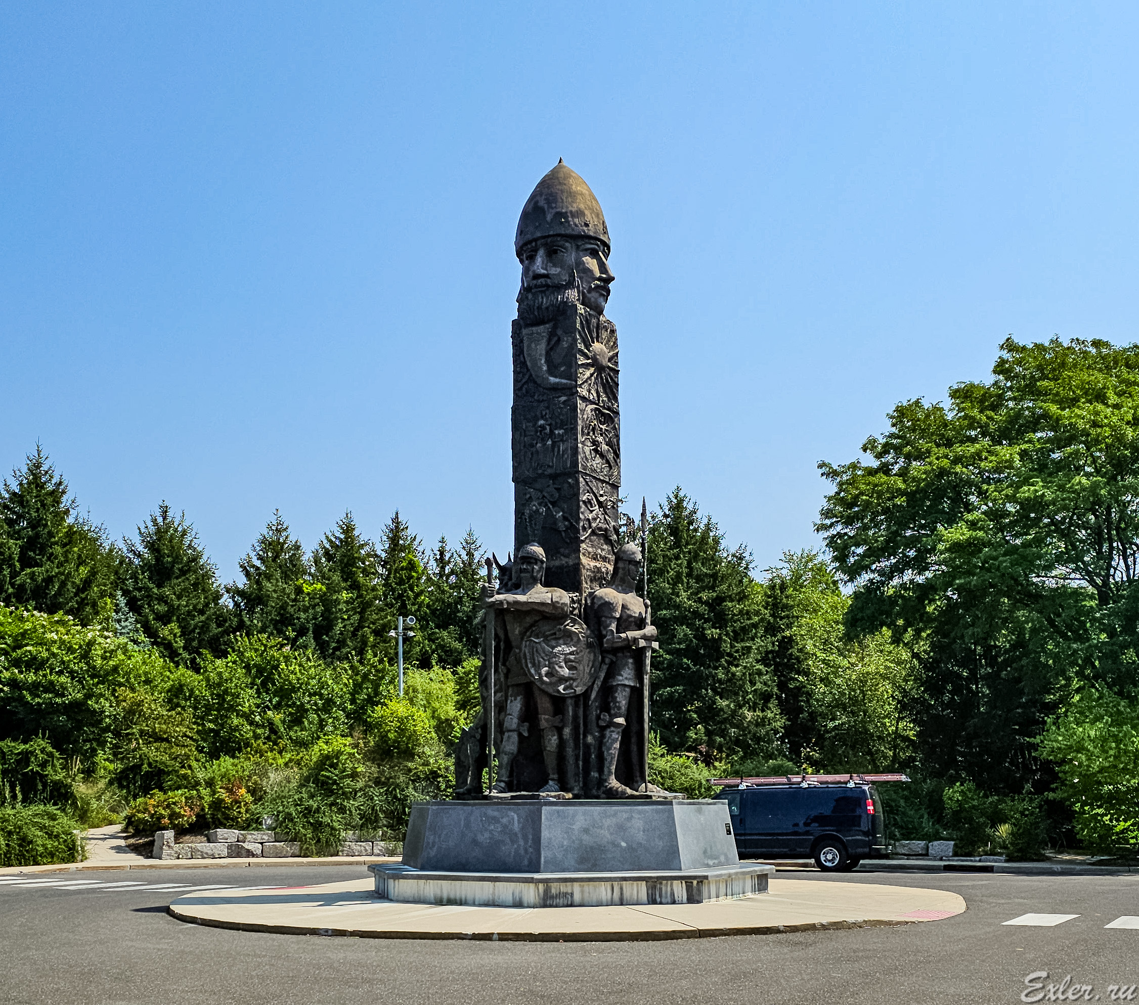Что-то такое очень богатырское. На табличку с названием я не смотрел, я не люблю, когда мне все объясняют, и я считаю, что это творческое переосмысление того факта, что Илья Муромец и Алеша Попович были сиамскими близнецами.