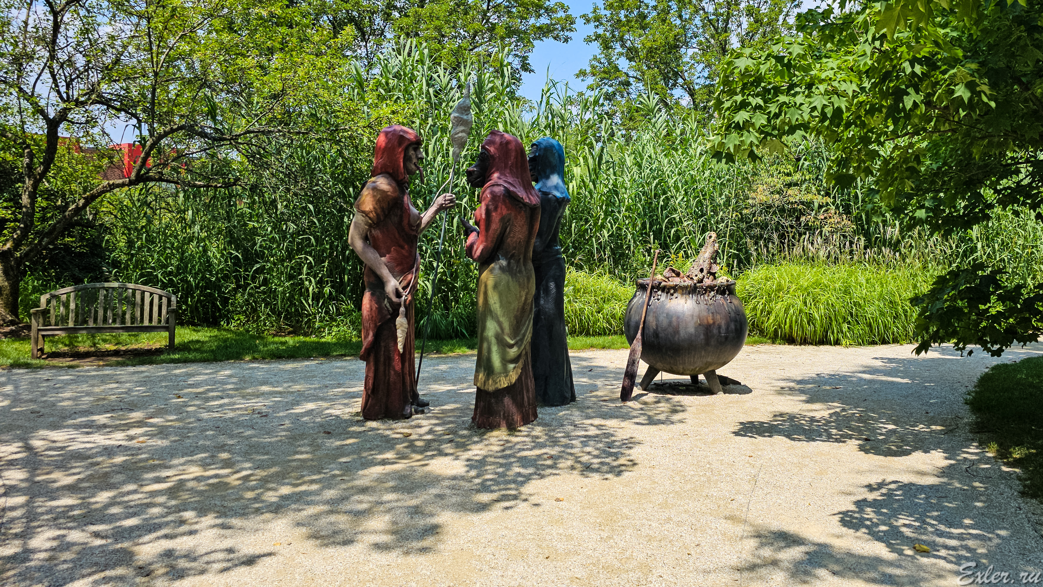 А этот раздел композиции посвящен людям, создававшим этот парк. Именно поэтому один из гостей сидит в маске сварщика.