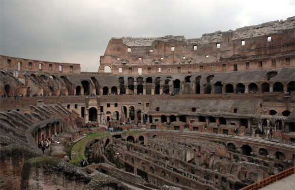 Под ареной размером 76х46 м располагался еще один подземный этаж, в котором находились различные хитрые механизмы и клетки для зверей. Устройство арены было настолько сложно, что позволяло заливать ее водой и разыгрывать всякие представления - на потеху, разумеется, римской черни, кому же еще...