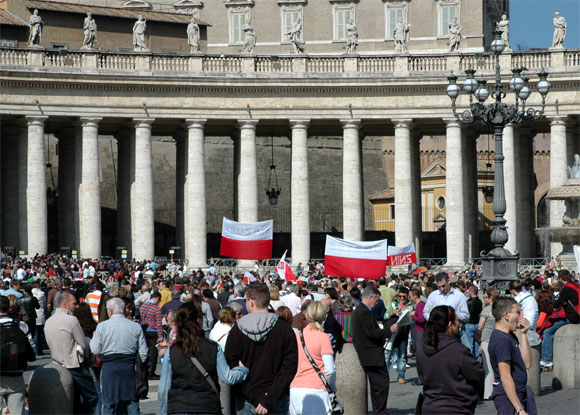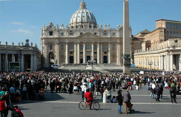 В солнечный день на площади собора Святого Петра всегда многолюдно.