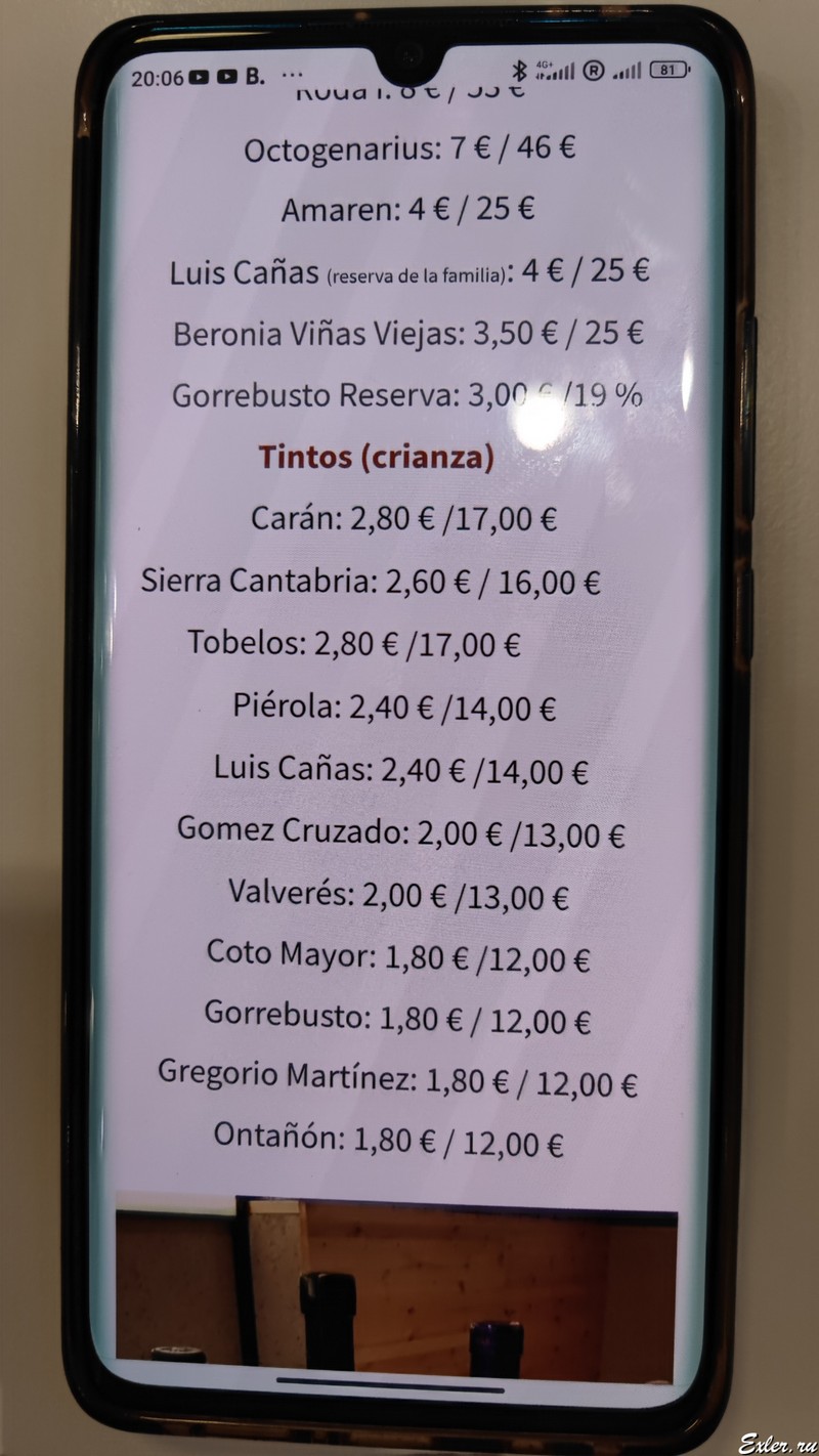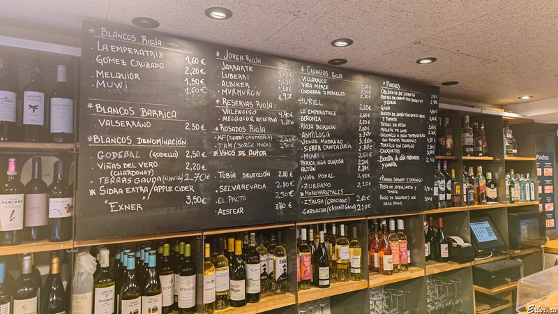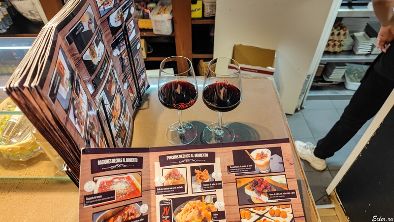 Меню с вином висит на стене, а на закуску можно взять что-то из пинчос. Например, какие-то пинчос в данном заведении победили на некоем конкурсе. Мы взяли что-то попробовать - было очень вкусно.