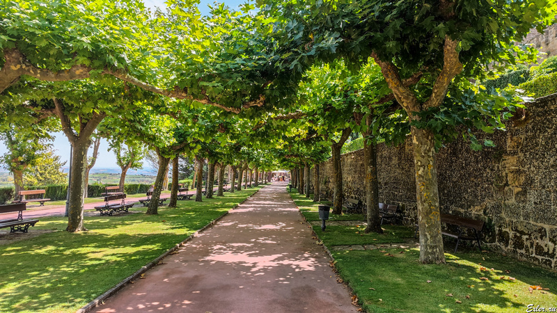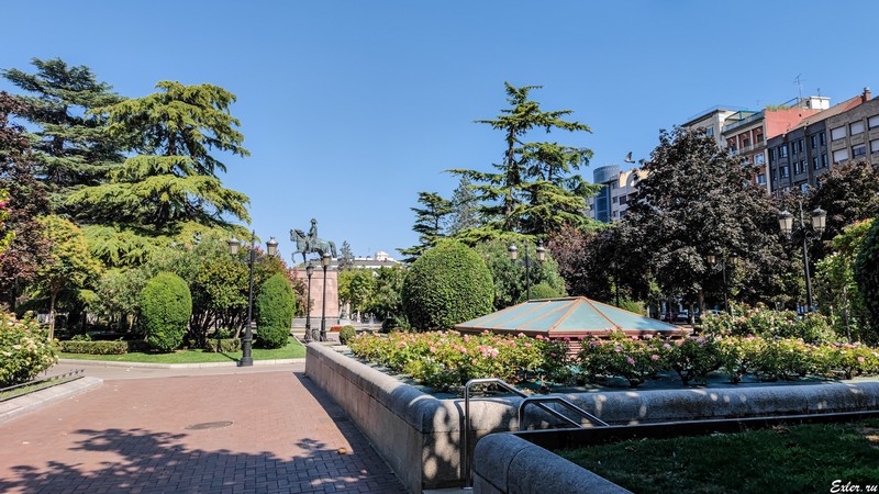 В парке установлен монумент генералу Эспартеро (вон монумент виднеется в центре фото): он - выходец из низов, он дослужился до звания генерала, в 1840 году стал главой правительства, а 1841 году был избран регентом королевства. Эспартеро активно изучал опыт французских виноделов из Бордо, и занимался совершенствованием виноделия в Логроньо и Риохе, из-за чего его даже считают одним из родоначальников современного риоханского виноделия.