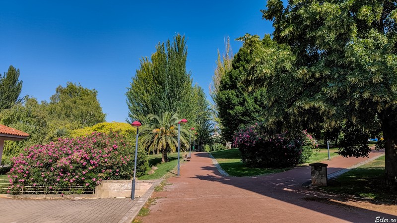 Через всю Риоху (и Логроньо, в частности) протекает крупнейшая испанская река Эбро (она вытекает из Кентабрийских гор, имеет длину почти тысячу километров и впадает в Средиземное море): в Логроньо рядом с Эбро расположены большие и красивые парки - вот один из них.
