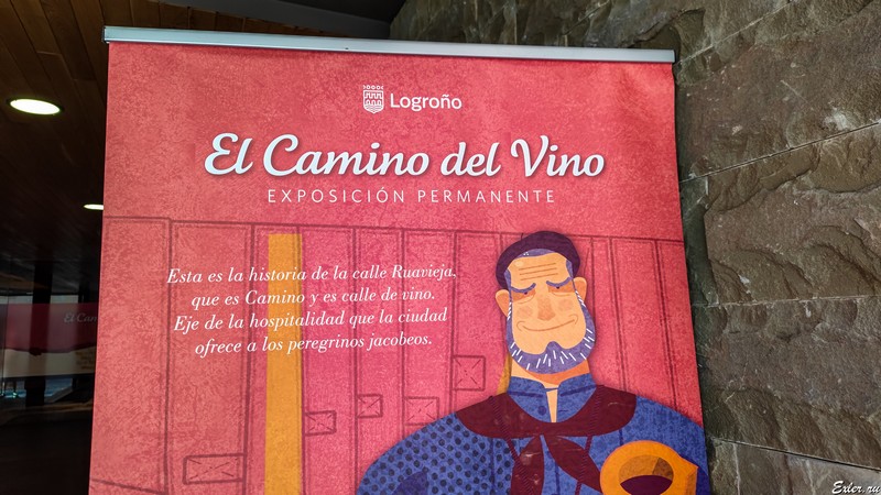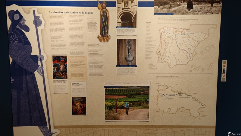 Собственно, больше ничего другого в этой экспозиции не было, но через дорогу у них было продолжение, посвященное как пути вина, так и пути святого Иакова. Вот, например, карта основных направлений El Camino de Santiago и ее ответвлений из различных регионов, откуда паломники могли прийти пешком и влиться на основную трассу.